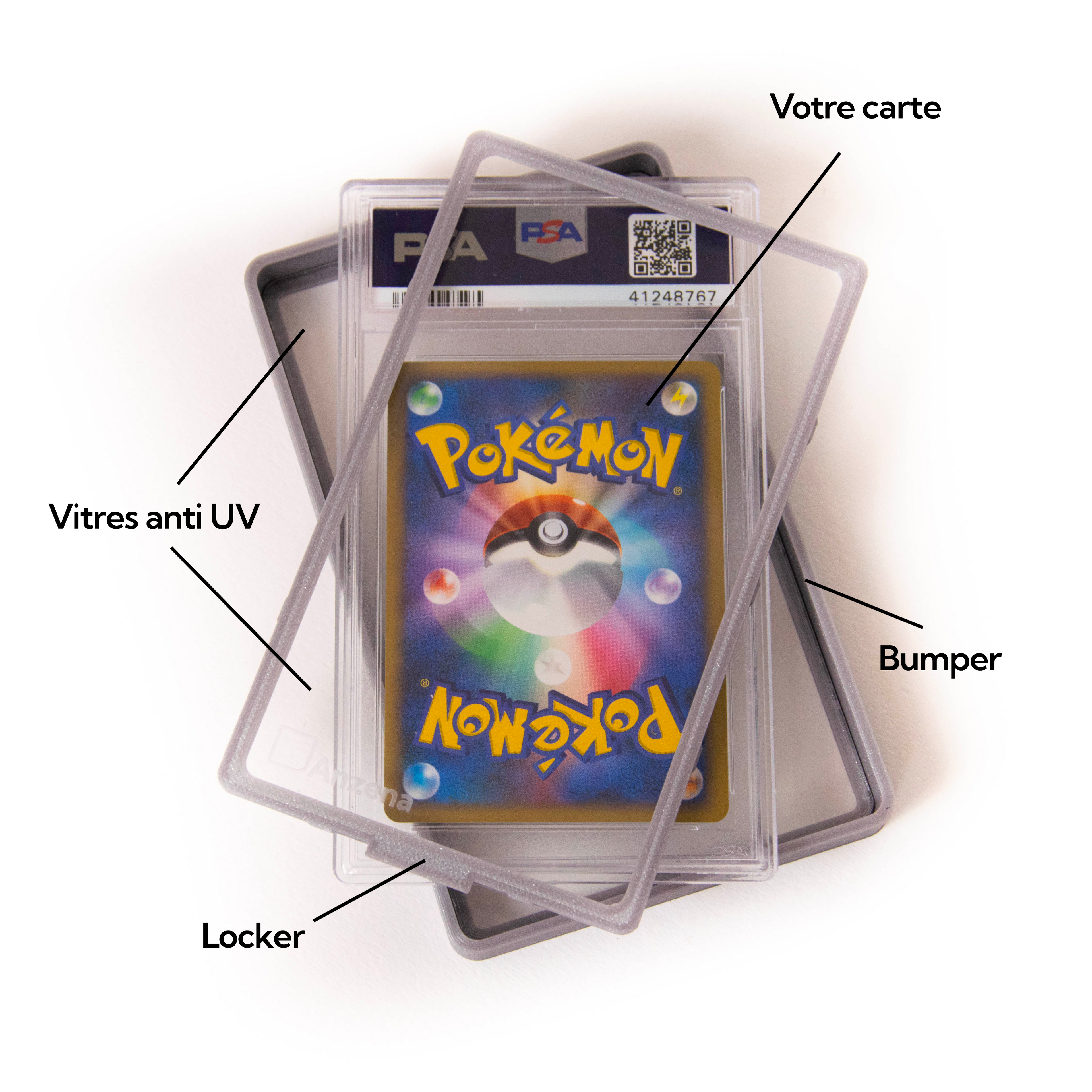 Protégez vos cartes en toute sécurité grâce à deux vitres anti-UV, un cadre ajusté au dixième de millimètre et un verrouillage précis.